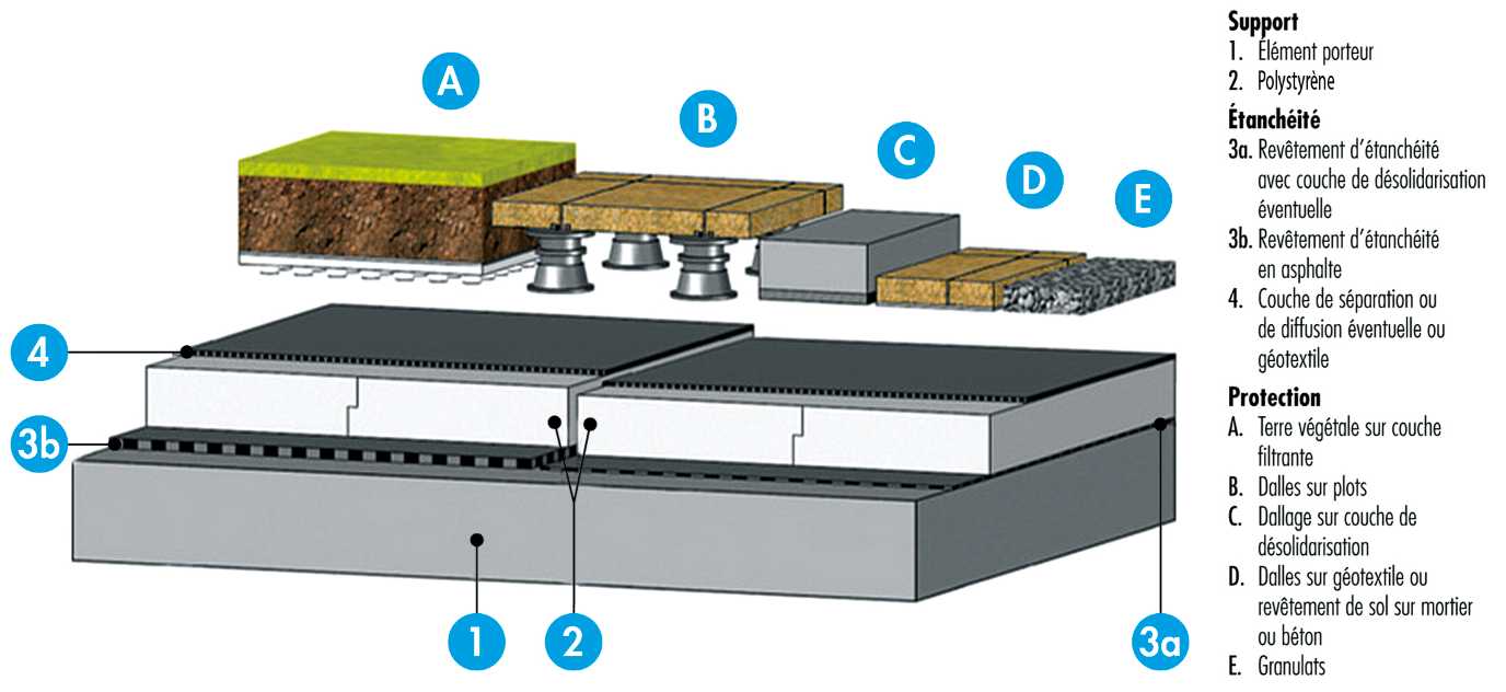 - Isolation sur l'étanchéité (système inversé) en polystyrène extrudé